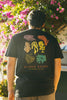 Design printed on the front and back of our custom cut and sew garment tee.  Featuring a new set on collar on a super soft cotton fabric and includes our embroidered flag icon on bottom right side for style.