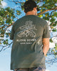 Design printed on the front and back of our custom cut and sew garment tee. Featuring a new set on collar on a super soft cotton fabric and includes our embroidered flag icon on bottom right side for style.