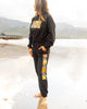 Get cozy in our Aloha Xchng women's Patchy sweatpants. This new style will be your favorite new pant for all things comfortable but stylish. Part of our custom cut and sew garment program, this new style comes with an elastic waist band, drawstring for tightening, pockets, and elastic cuffs.